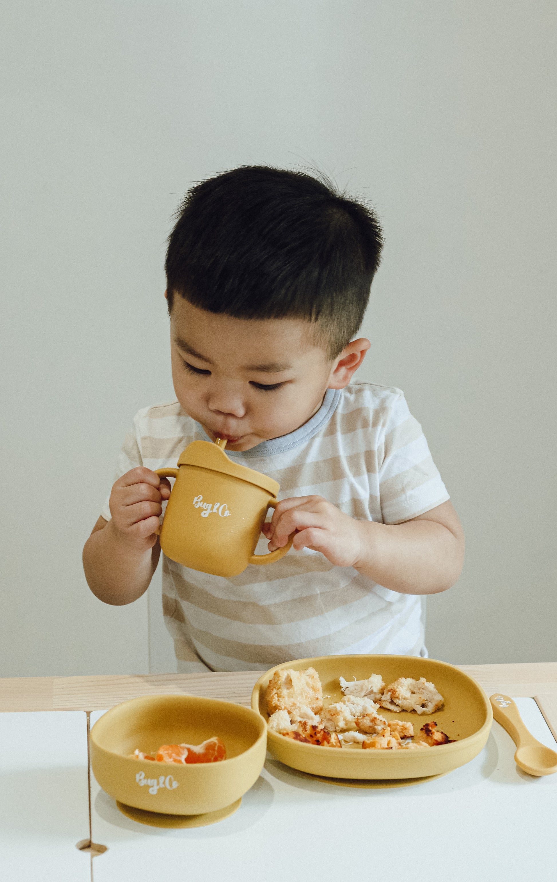 All of our dining sets and items are dishwasher and microwave safe. We chose silicone as our star material as it is highly heat resistant and super easy to clean.